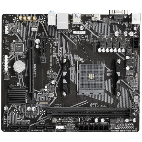 GIGABYTE A520M K V2 Motherboard - Supports AMD Ryzen 5000 Series AM4 CPUs, up to 5100MHz DDR4 (OC), PCIe Gen3 x4 M.2, GbE LAN, USB 3.2 Gen 1. Processor manufacturer: AMD, Processor socket: Socket AM4, Compatible processor series: AMD Ryzen 3000 Series, AMD Ryzen 5000 Series. Supported memory types: DDR4-SDRAM, Maximum internal memory: 64 GB, Memory slots type: DIMM. Supported storage drive interfaces: M.2, SATA III, Supported storage drive types: HDD & SSD, RAID levels: 0, 1, 10. Maximum resolution: 4096 x 2160 pixels. USB connector type: USB Type-A
